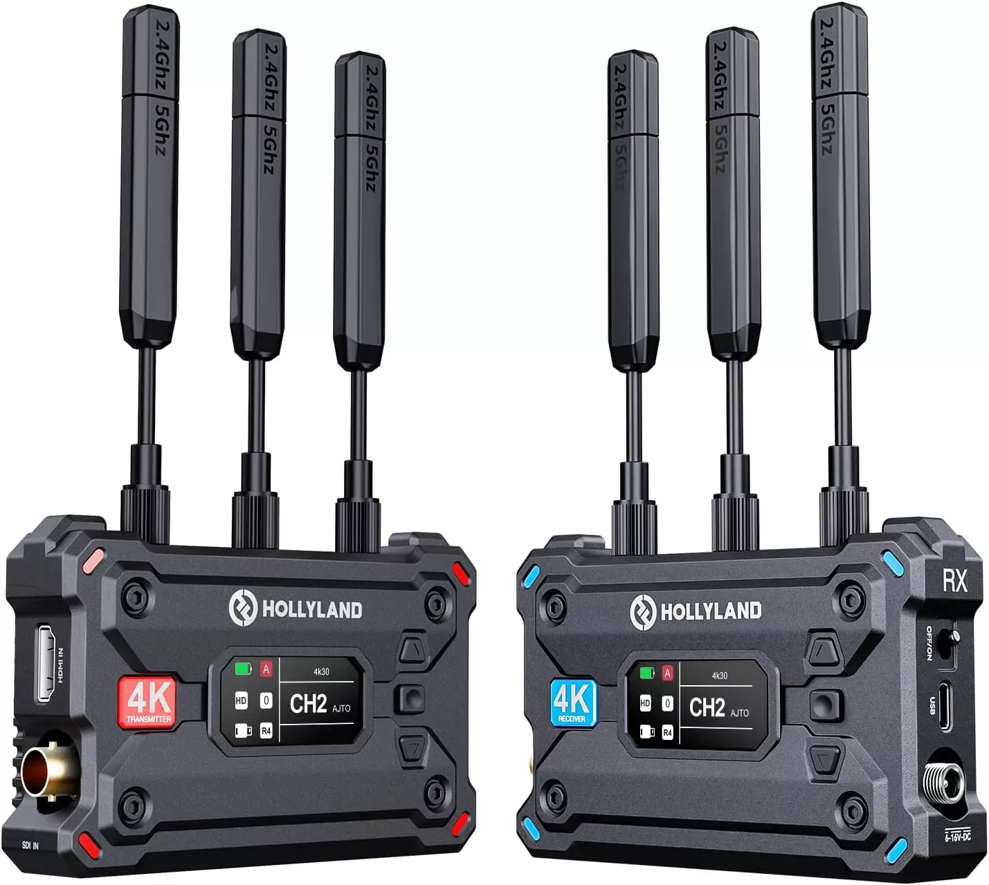 Adicione transmissão de vídeo sem fio 4K30 à sua produção usando o versátil Sistema Transmissão Vídeo Hollyland Pyro S 4K HDMI/SDI Wireless. O Sistema Hollyland Pyro S inclui um Transmissor TX e um Receptor RX sem fio, sete antenas, um adaptador USB-C, um adaptador de energia DC e um suporte de adaptador de sapata ajustável. O Transmissor Hollyland Pyro S fornece entradas HDMI e SDI e apresenta latência extremamente baixa de 50 ms que aceita transmissão em linha de visão de até 396 metros de distância do Receptor Hollyland Pyro S incluído. Ao usar o modo de Transmissão com até quatro Receptores e dois dispositivos móveis, o sistema suporta até 198 metros de distância. O Receptor Hollyland Pyro S tem saída para HDMI e SDI.
